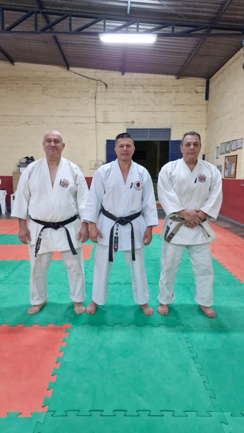 O encontro ganhou um brilho ainda mais especial com a menção honrosa e a presença ilustre dos Senseis Sandro Hatskoski e Denilson Giovano Bigoni. Amigos de longa data e companheiros de jornada do Sensei Raimundo, eles compartilham a mesma origem marcial: os tempos de aprendizado árduo na cidade de São Miguel, onde foram moldados técnica e filosoficamente sob a tutela do Mestre Takashi Shigueeda. A presença deles nos lembrou que o Karatê cria laços que o tempo não desfaz.